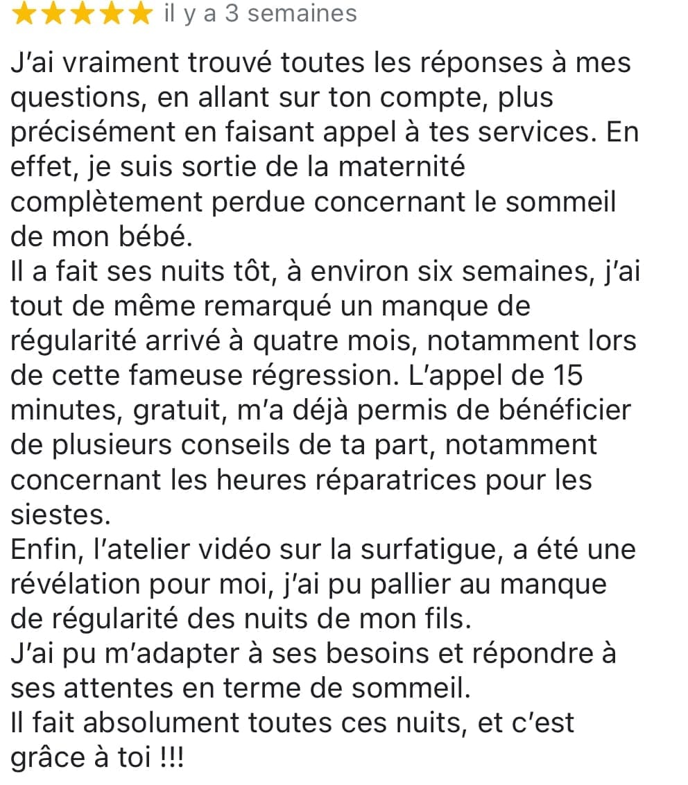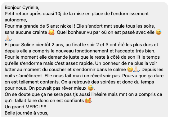 J'ai continué en ce sens; éblouie par les changements, et passionnée par le sujet, j'ai étudié tout le sommeil de l'enfant pour, à mon tour, aider les parents 🙏